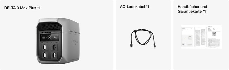 1. DELTA Max Powerstation CH-Version 2. AC-Ladekabel 3. Betriebsanleitung