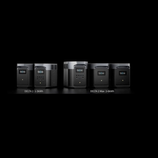 Nehmen Sie DELTA 2 Max als Einzelgerät überall hin mit, oder verbinden Sie die Powerstation mit zwei Zusatzakkus, um total bis zu 6 kWh Speicherkapazität zu erhalten.