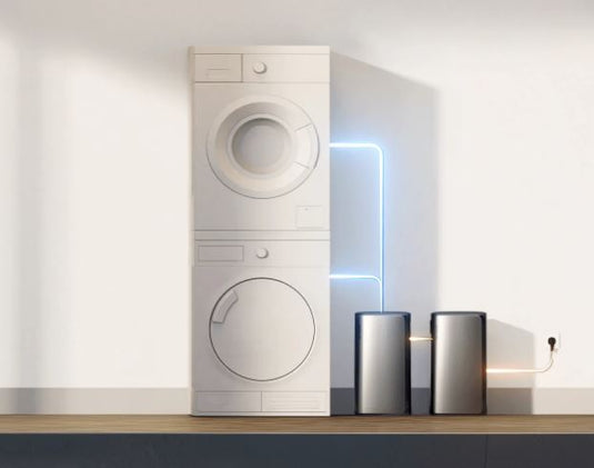 Bei diesem Modus verbinden Sie zwei Einheiten mit einem Parallelkabel (optionla), um Geräte mit hohem Energiebedarf, wie Waschmaschinen, Tumbler oder Geschirrspüler, komplett mit gespeicherter Sonnenenergie zu betreiben.