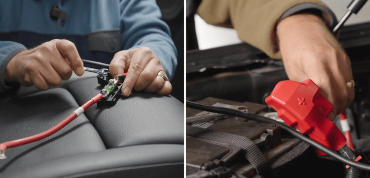 2. Schliessen Sie das Sicherungskabel am anderen Ende an die Fahrzeugbatterie (Starterbatterie) an.
