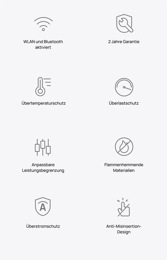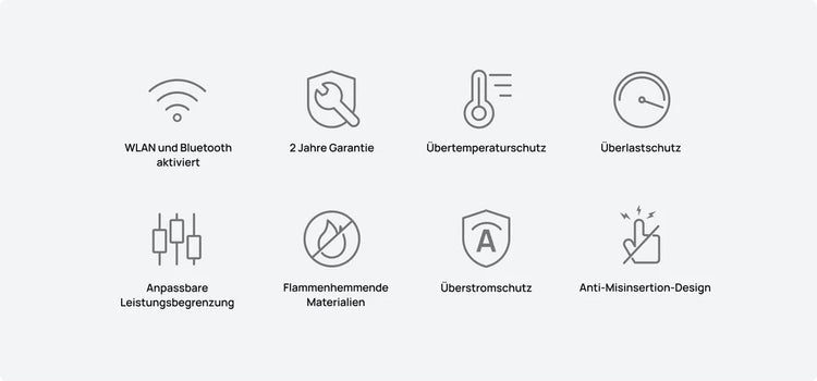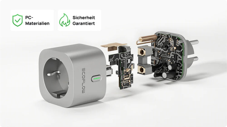 Die aus feuerfesten PC-Materialien hergestellten EcoFlow Smart Plug Steckdosen sind gegen Brandgefahren geschützt. Darüber hinaus sind sie langlebig und robust und verfügen über eine hervorragende Beständigkeit gegen Abrieb, Fett, Säure und Lauge.
