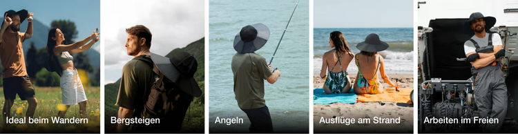 Idéal pour la randonnée, l'alpinisme, la pêche, la plage, les travaux en plein air et bien plus encore. Parfait pour le chargement de l'énergie solaire lors des activités de plein air et pour la protection solaire.