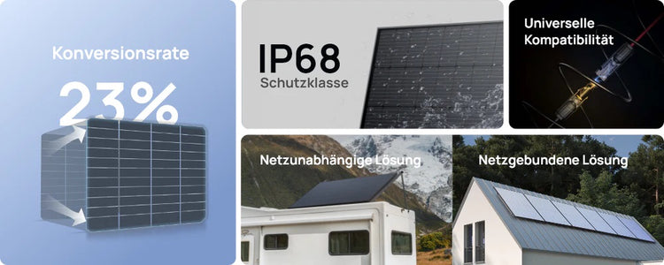 Grâce à sa construction robuste, le module solaire de 400 watts convient à une utilisation stationnaire à la maison ou dans une maison de vacances ainsi qu'aux applications mobiles . Qu'il fasse partie d'un système îlot compact ou qu'il soit l'extension d'un système solaire plus grand , ce module fournit toujours une énergie fiable partout où vous en avez besoin.