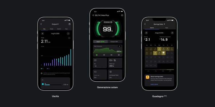 Ottieni informazioni complete e mantieni il pieno controllo in ogni momento. La dashboard intuitiva mostra a colpo d'occhio i tuoi consumi energetici, i risparmi e la produzione solare attuale. Monitora facilmente i livelli della batteria, le previsioni solari, i prezzi dell'elettricità in tempo reale e i tuoi vantaggi finanziari.