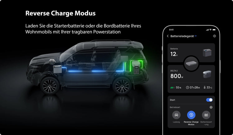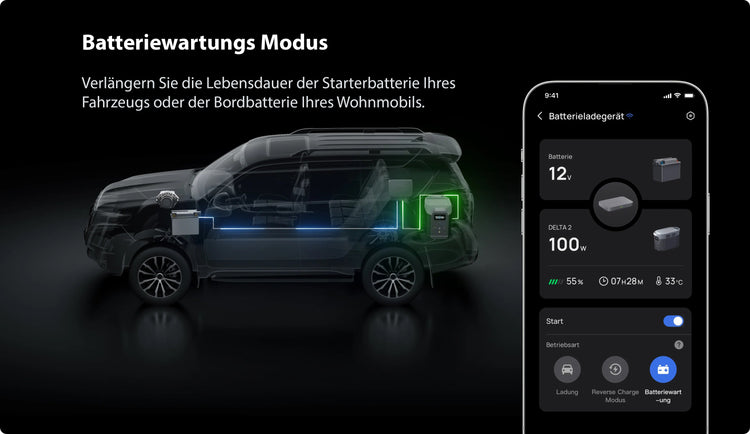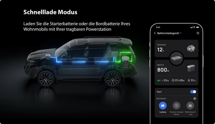 Ricarica bidirezionale e cura della batteria in un unico dispositivo. Risparmia tempo, denaro e spazio prezioso nel veicolo. Grazie alle funzioni di ricarica rapida intelligenti ed efficienti avrai sempre energia, indipendentemente da quanto tempo sarai in viaggio.