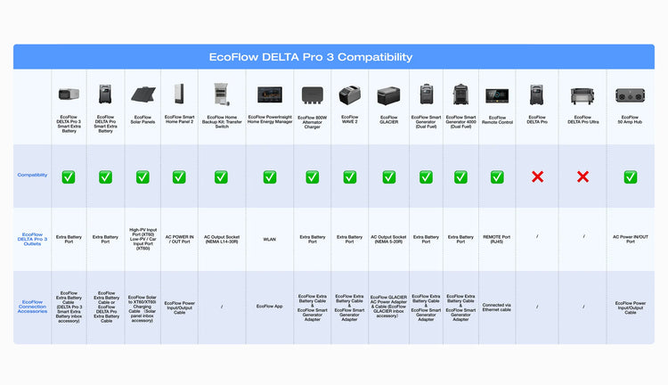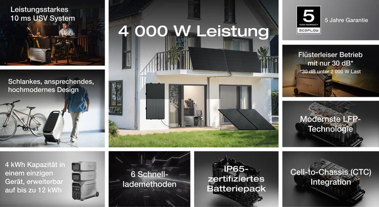 La DELTA Pro 3 Powerstation di EcoFlow fornisce energia a quasi tutti i tuoi dispositivi elettrici. Con una potenza AC di 4000 W o utilizzando la tecnologia X-Boost è possibile utilizzare dispositivi adatti con una potenza fino a un massimo di 6000 W tramite l'uscita CEE 16/3 .