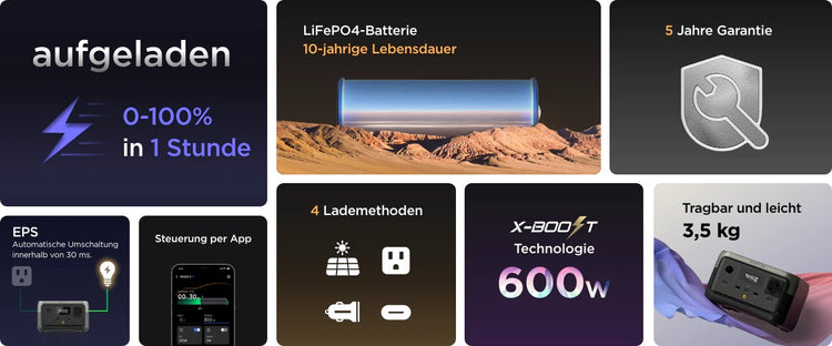 EcoFlow RIVER 2 Powerstation supera lo standard di velocità di ricarica del settore, caricandosi completamente in soli 60 minuti . È 5 volte più veloce rispetto ad altre centrali elettriche portatili sul mercato e 38% più veloce rispetto alle generazioni precedenti.