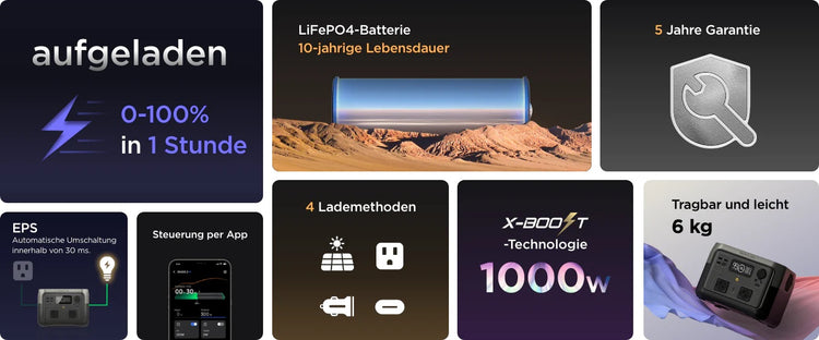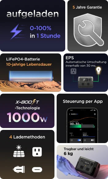 La centrale elettrica RIVER 2 Max ha una potenza di uscita CA fino a 500 W. Hai bisogno di ancora più potenza? Utilizza la modalità X-Boost della tua centrale elettrica RIVER 2 Max per aumentare la sua potenza fino a 1000 W.