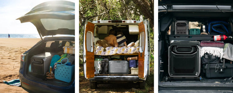 Für den Einsatz im Fahrzeug bietet EcoFlow eine ausziehbare Haltevorrichtung, mit der die Kühlbox sicher fixiert und dennoch jederzeit zugänglich ist – ob im Camper, Kofferraum oder Servicewagen. So bleibt alles am Platz – selbst bei voller Fahrt.