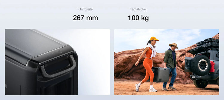 In Kombination mit der in diesem Set enthaltenen 298 Wh Plug-in Batterie geniessen Sie bis zu 39 Stunden kabellose Kühlleistung – ganz ohne externe Stromquelle. Perfekt für autarke Abenteuer, Campingplätze ohne Stromanschluss oder flexible Einsätze unterwegs. Die Batterie lässt sich sogar per Solarpanel oder USB-C aufladen und dient gleichzeitig als mobile Powerbank.