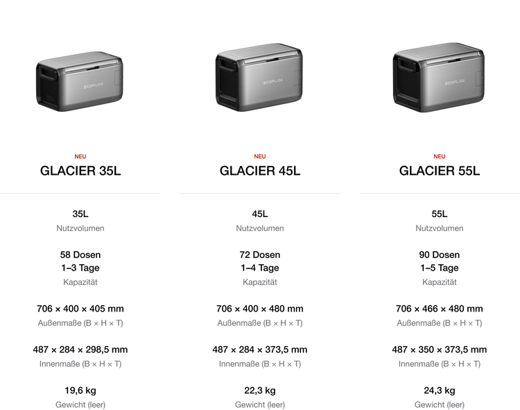 Alle EcoFlow GLACIER Classic Modelle im Überblick.